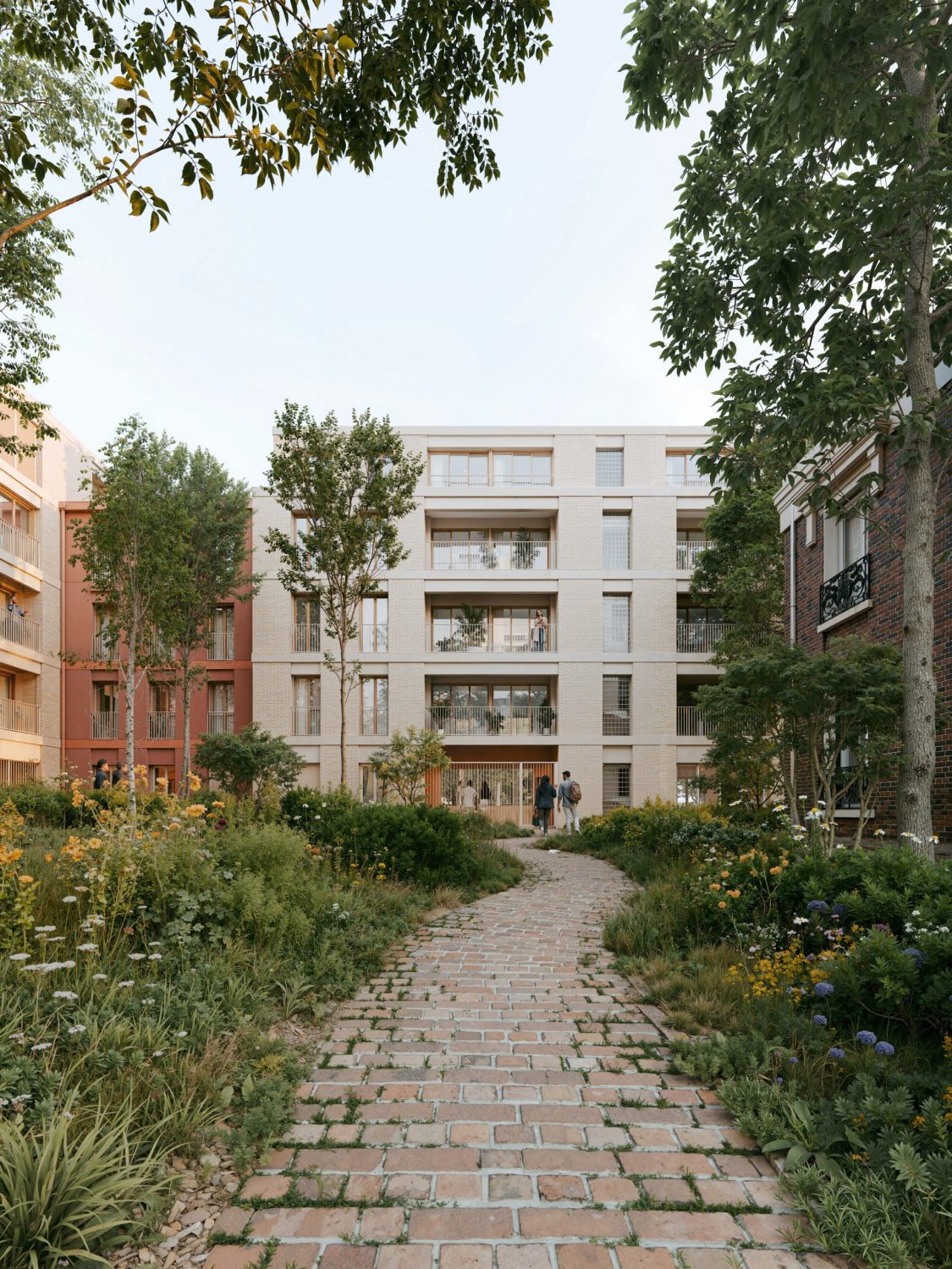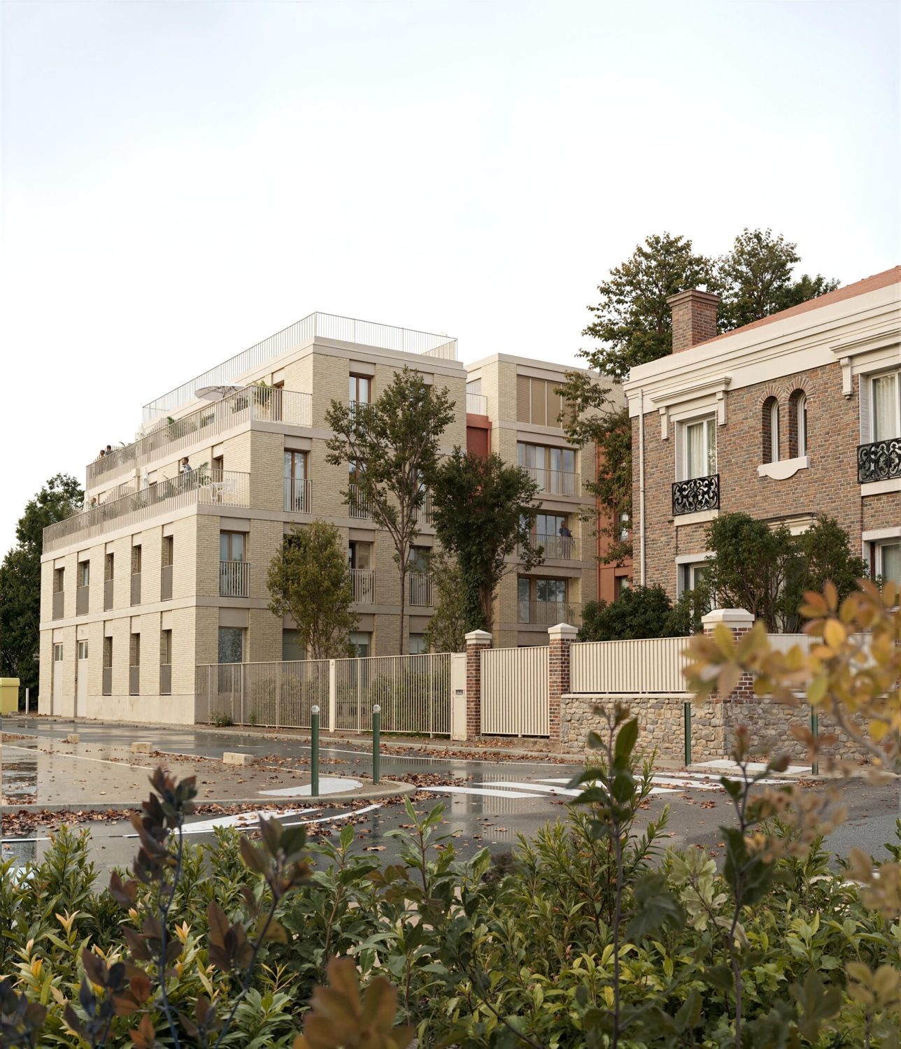 La programmation multiple de cette nouvelle pièce urbaine doit permettre de conforter et d’enrichir les usages et les qualités intrinsèques de ce morceau de ville. Nous positionnons les logements sur la périphérie du site afin qu’ils soient situés à bonne distance de la maison conservée. Ils participent ainsi à créer un grand jardin apaisé en cœur d’ilot, ouvert sur la rue Edgard Quinet, sur un linéraire de 15m. Cette respiration dans ce tissu dense de la ville faubourienne participe à la végétalisation et la luminosité de l’espace public.